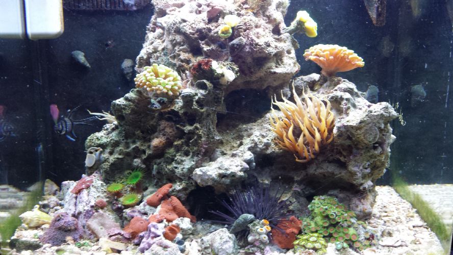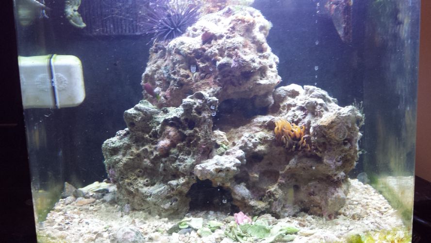 After yesterday, everything has been moved to the new tank except the cuc, a wrasse, peppermint shrimp, and urchin. Which will be moved over when I finish taking this tank down.