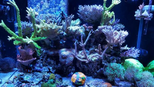 From time I added coral until now is 3 years. That being said I have cut, hacked, replaced, sps like crazy, sometimes fist size colonies, some have gotten so big I have just given them away (Bob comes to mind). I also ran 1 light only for 1 year before I added a second. Like that red planet, got too big so its gone, kept a few frags as you can see when comparing the 3rd and 4th pics.