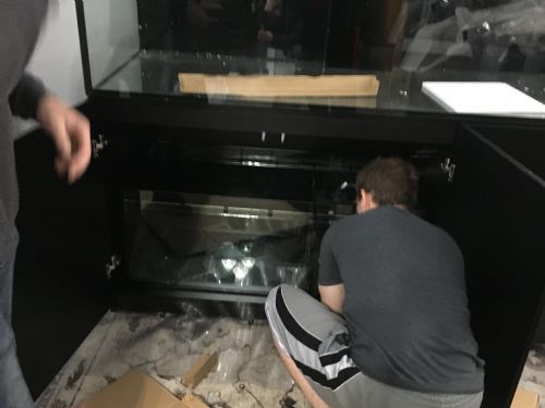 Now to get the stand and tank inside. Tank weight over 350 pounds so I enlisted 3 Marines and a neighbor..