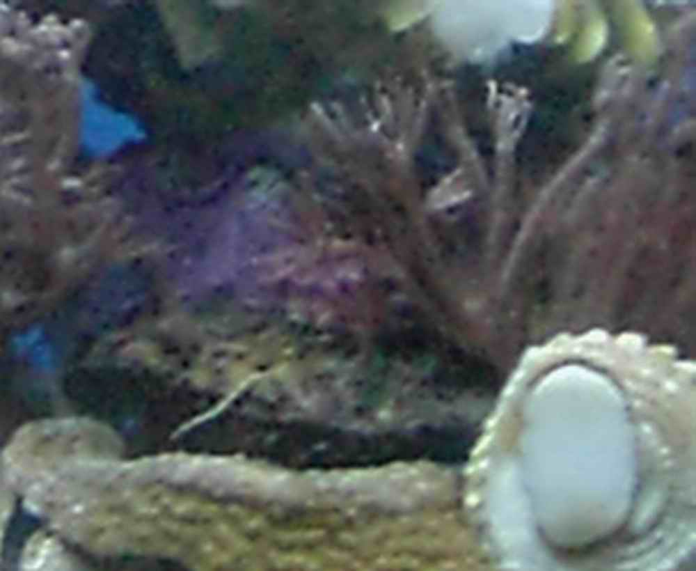 The picture was taken with full lights on. If it's a brittlestar, I don't want it do I? I could always try and grab it with my trusty pair of hemostats (nurses always have pairs of hemostats) and see what I pull out. Susan
