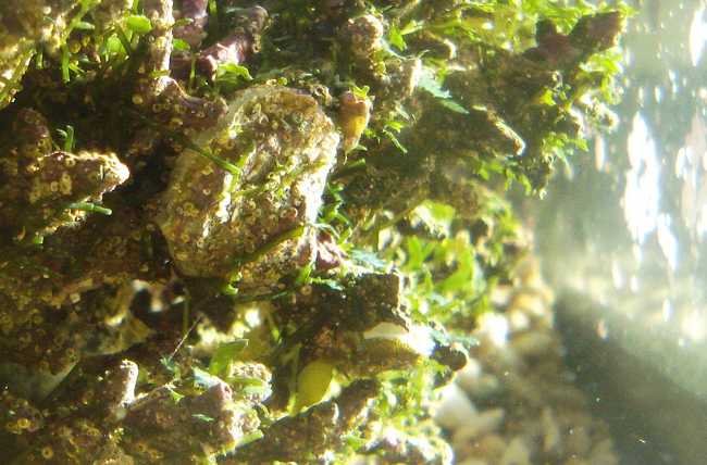 If you think it looks like a clam, it probably is. With some marine clams/bivalves, one side grows against the rock or in this case the Frogspawn skeleton. The reason the Emerald Crab is hanging around is probably because the skeleton has some algae on it or because it's eating the Frogspawn. I can see some Coralline Algae on the rock but is there any other kind of algae anywhere else in the tank? If its a new tank, there may not be enough algae in the tank for the Emerald Crab. This is usually what makes an Emerald turn to eating coral.