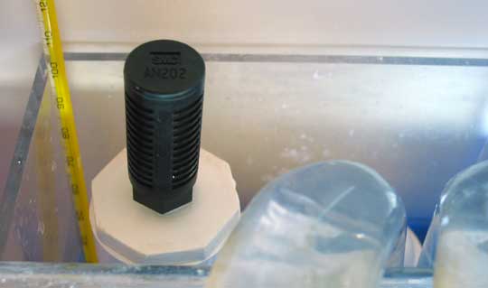 Will, this worked for me with downspouts. I'm only mentioning it to you because it was simple to try. Our downspouts used to gurgle pretty loud as the water "fell" down inside them. We closed the ball valve a tiny bit, which allowed more water to collect in the tube. The water then falls a shorter distance, and doesn't gurgle loudly. But maybe that changes the whole physics and chemistry. So try it if you like. One of these days, you should come & see our tank if you're in the area.