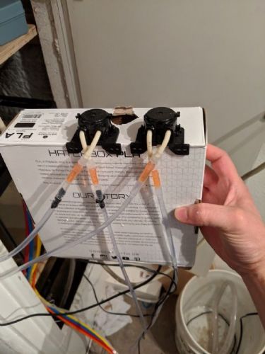I recently bought a 150 gallon tank and wanted to do even more automation on it. I initially set everything up in another cardboard box to do temperature monitoring. Unfortunately I had some problems with water leaking all over the floor (sump overflow) and decided I needed to do better than a cardboard box underneath my tank. So it was unplugged and it took me a long time to design, print, put together, setup my new reef pi. Finally last week I was ready to at least do temperature monitoring and Auto TopOff. Shortly after that I already had all the components ready and so I hooked up my calcium and alkalinity dosing. So here are some pictures.