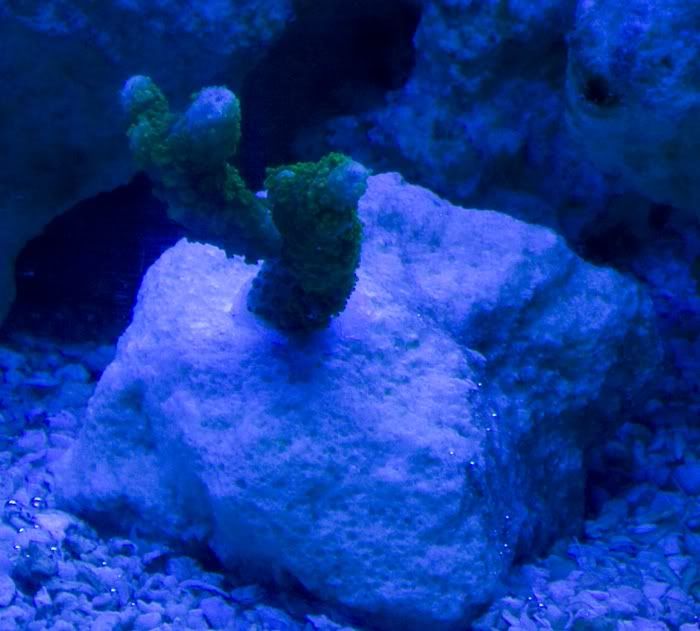 The xenia doesn't seem terribly thrilled about the new lights (it's looking kind of droopy today), but I'm slowly acclimating and it will probably be ok. I picked up a couple frags at the meeting on Thursday and I got another at reefrunners today.