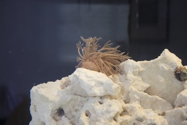 Speaking of xenia doing well anywhere, I found a small stalk growing in my sump yesterday. I haven't posted a lot lately but not a lot has been going on either. I'm still waiting on my light, if it weren't coming from a reputable guy I'd start to worry, but I am getting a little impatient. I've added a few more snails and a couple hermit crabs, and they seem to be keeping on top of the small amount of diatoms that have been in the tank for the last week or so. I've started feeding less and reducing the light cycle.