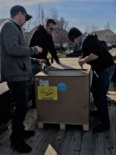 Its a big heavy crate OCDs neighbors had a fork lift to help load it on our trailer.