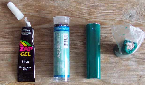 I use "Zap Gel" from any hobby shop and Aquamend from Home Depot.