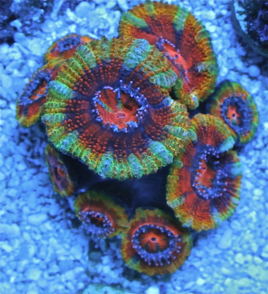 Thanks! That orange chalice is Reef Odyssey's Blood Orange. I'll have to get a pic of that one by itself. That picture does it no justice.