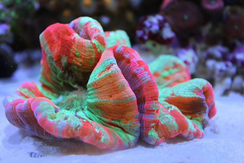 I LOVE the purple center and green rims. I've had my eye out for a good deal on Raptor's peace favia. Call me corny but I thought it would be cool to have the "war coral" and the "peace coral" on either side of my "war and peace" hahaha.
