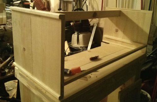 I'm hoping to have the sides and front finished by this weekend so that I can start on molding and the door.