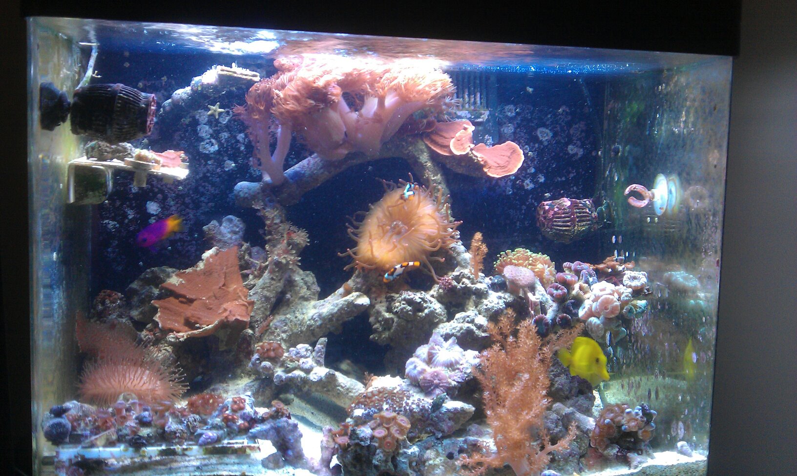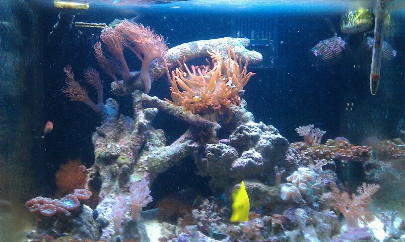 Just thought I would show a little update on the red sea I just replaced the lights they where upgraded to 65w T5 so I just replaced them with what the other guy had in it and It MADE A BIG difference!! "Wish I had the money for LEDS Maybe some day"