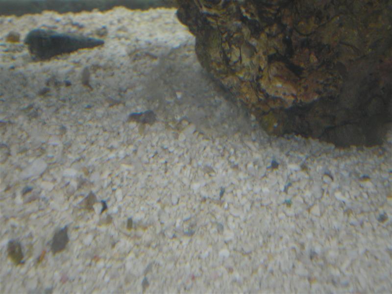 Every now and then, I have a bubble in my tank that looks like a spider web. I would only see it in the morning, so one night I snuck in to take a peak at who was making this bubble web. It was the six line wrasse. Does anyone have any insight why the wrasse would do this. It uses the bubble for sleeping in. The pictures are not very good, but it is at the bottom of the rock touching the sand. Usually the wrasse will find a hole in the rocks to sleep in, but sometimes it spins the web.