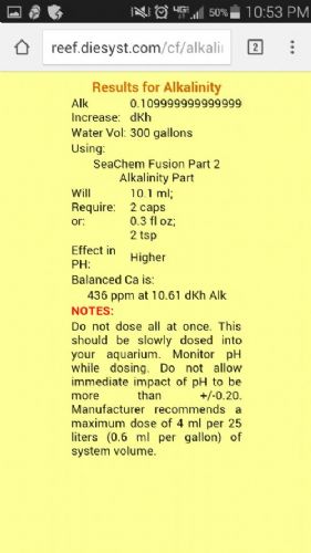 Rather than use a calculator I set it up and do testing to see if what is being added is keeping levels up. BTW, to shoot for a level as high as 11 dKH could be counterproductive. Every tank is different and chasing numbers can be disastrous. This is a new tank, right? Not a lot of stony coral yet, right? You want it to be easy to maintain, right?