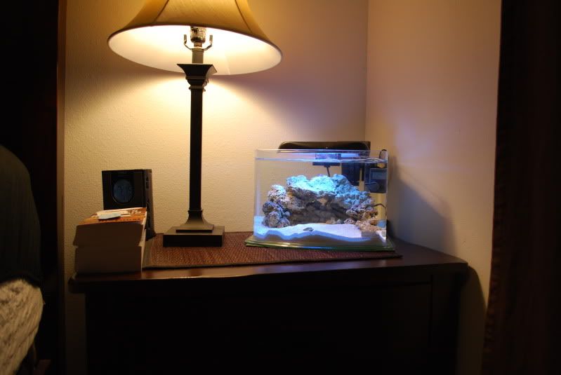 So far very pleased with the little tank. I do top it off every night with a cup of RO water - water evaporates fast in this thing. I'll need to build a small ATO for this in the next few weeks.