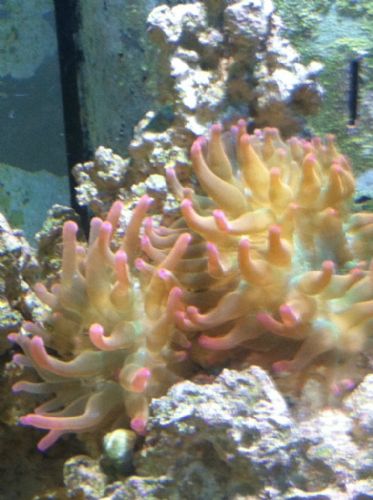 Rainbow Bubble tip split and my quarter size green and red rock anemone bummble bee snail just chillin