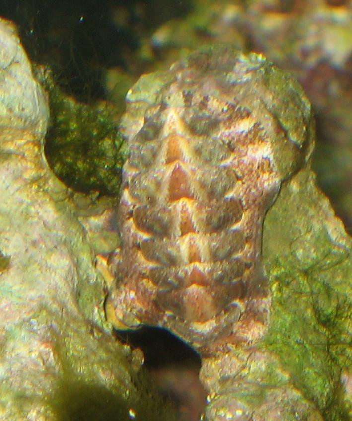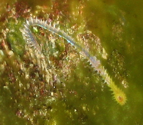 The slug like thing was pretty cool. When it is on a rock it is completely flat, as is shown on the picture. At first I didn't notice it. I actually didn't notice it until it started moving towards the top of the rock. Once it got to the top of the rock it seemed to stand on its two longest sides. (It looked like a piece of paper would look if you stood it on its two longest sides.) After it got to the top it started excreting some stuff from a small white tip. The stuff that it was excreting looked like microbubles, but I it could have been something else.