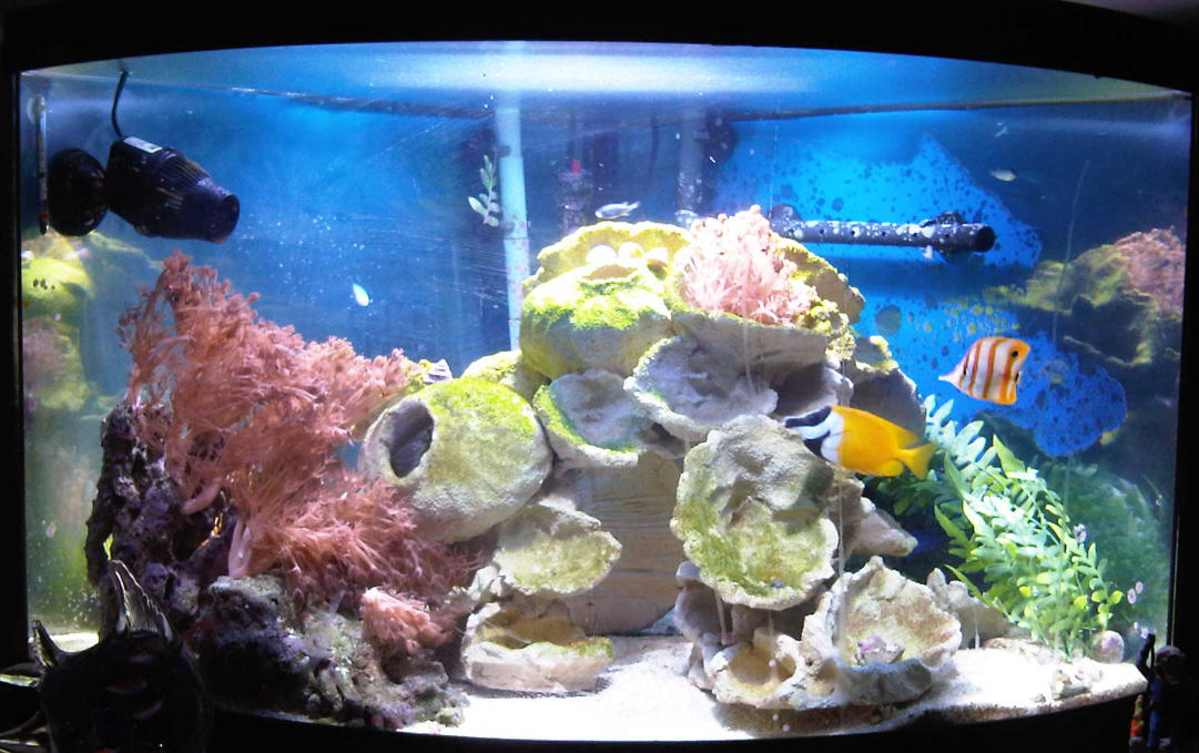 Right now I'm transitioning from live rock to a big piece of vidarock. So the picture below shows the tank as very crowded because I'm trying to seed the vidarock.
