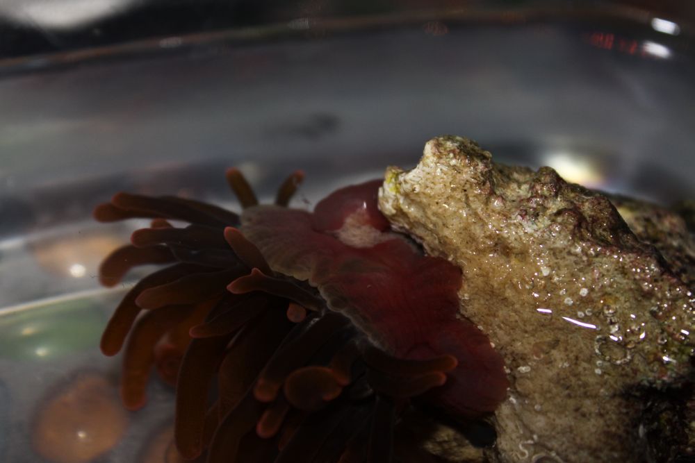 I have to agree with Adam. I think you are ok, especially since it is already attaching it's pedal disk to the rock and sides of the tub. I would release it into the tank for sure...it will be fine. I had one that was in my sump and got sucked into my return pump. I thought it was gone forever, but a few months later I noticed about 15 little red anemones popping up around my tank and in my sump. They were probably the size of a dime at that point...but all grew up into full fledged anemones.