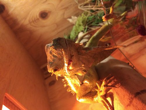 Unfortunately I have to move and I can't take my beautiful iguana and her enclosure with me. She is between 3 1/2 to 4 feet long and eats all types of greens and fruits. Her favorite is raspberry. With her is her custom built by myself corner enclosure. The cage is over 6 feet tall, 3 feet from the back corner out both sides, and about 2 out to the door. Its in the shape of a diamond. Picture has exact measurements. Will also through in a half bag of bark for the bottom of it. Was Asking $400 for everything bit for today only I'll take $200 or will trade for a nice hunting bow. Also might trade for salt water aquarium stuff. Feel free to text ANYTIME and let me know what you have.